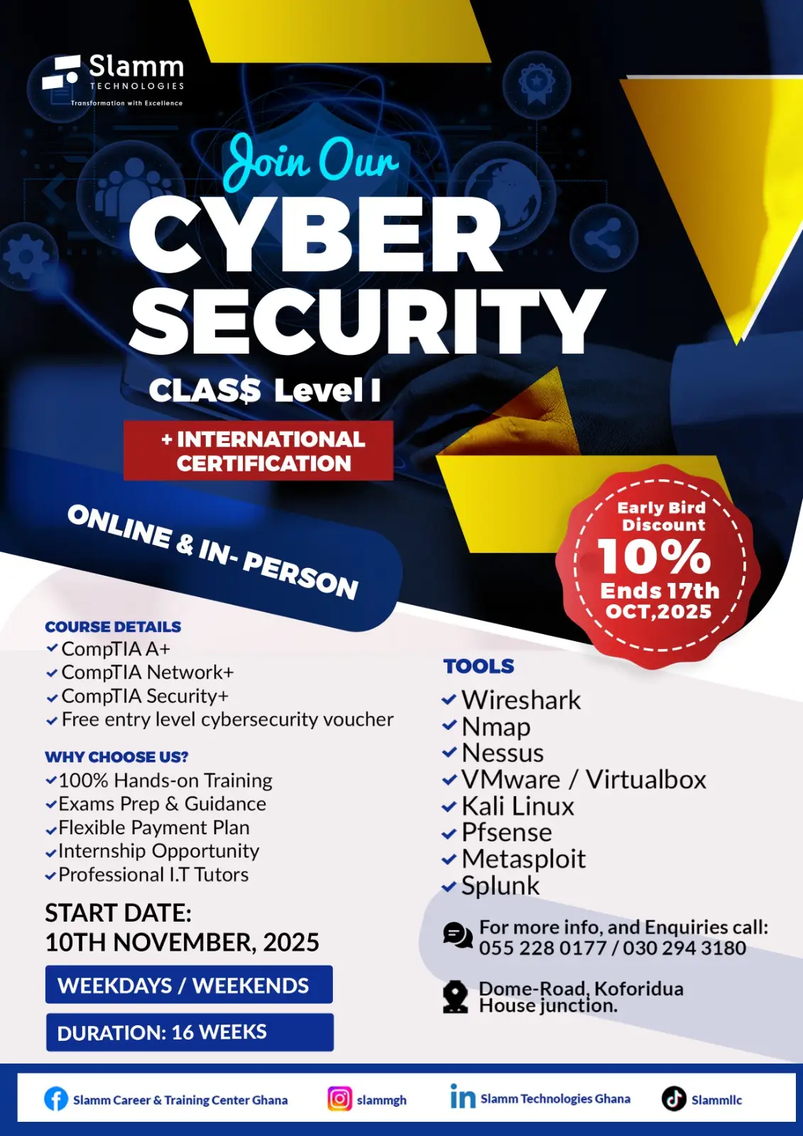 Discover the tools and techniques to protect organizations from cyber threats. This course focuses on risk management, threat mitigation, and modern security practices in Ghana and beyond.